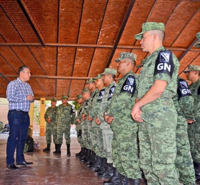 El alcalde de Jocotepec, José Miguel Gómez López dio la bienvenida a los elementos de la Guardia Nacional (GN). Foto: Ayuntamiento de Jocotepec.