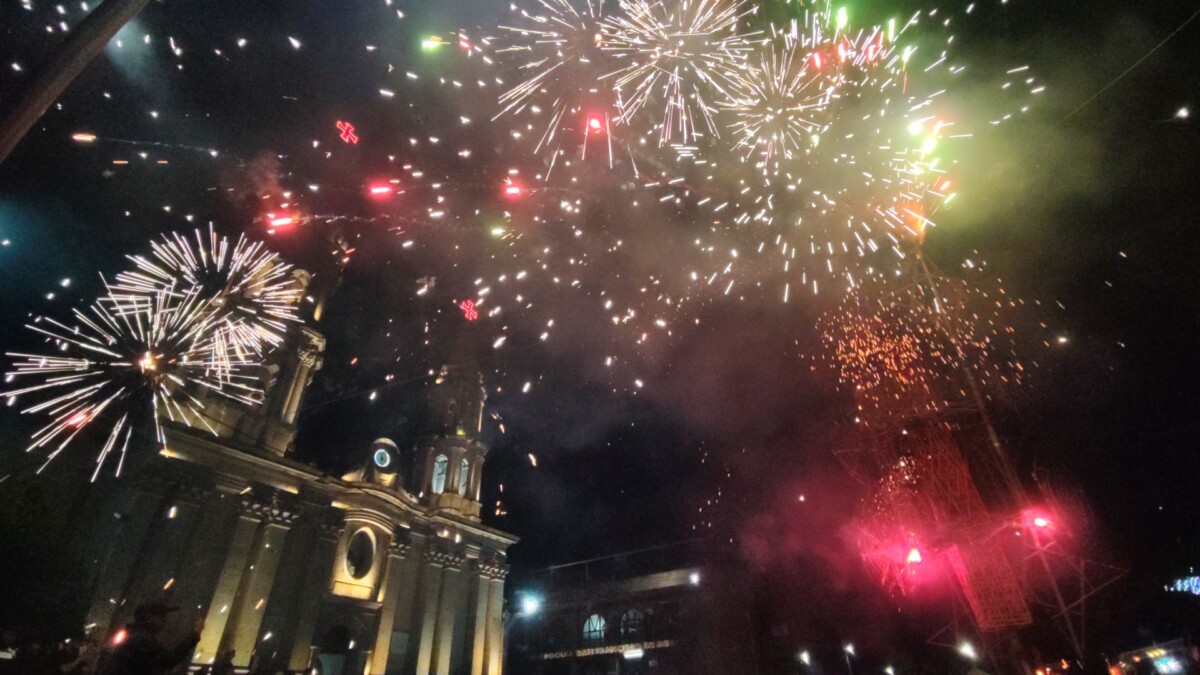 Fuegos pirotécnicos en el día de la peregrinación de las Familias de Troqueros Unidos de Chapala. Foto: D. Arturo Ortega.