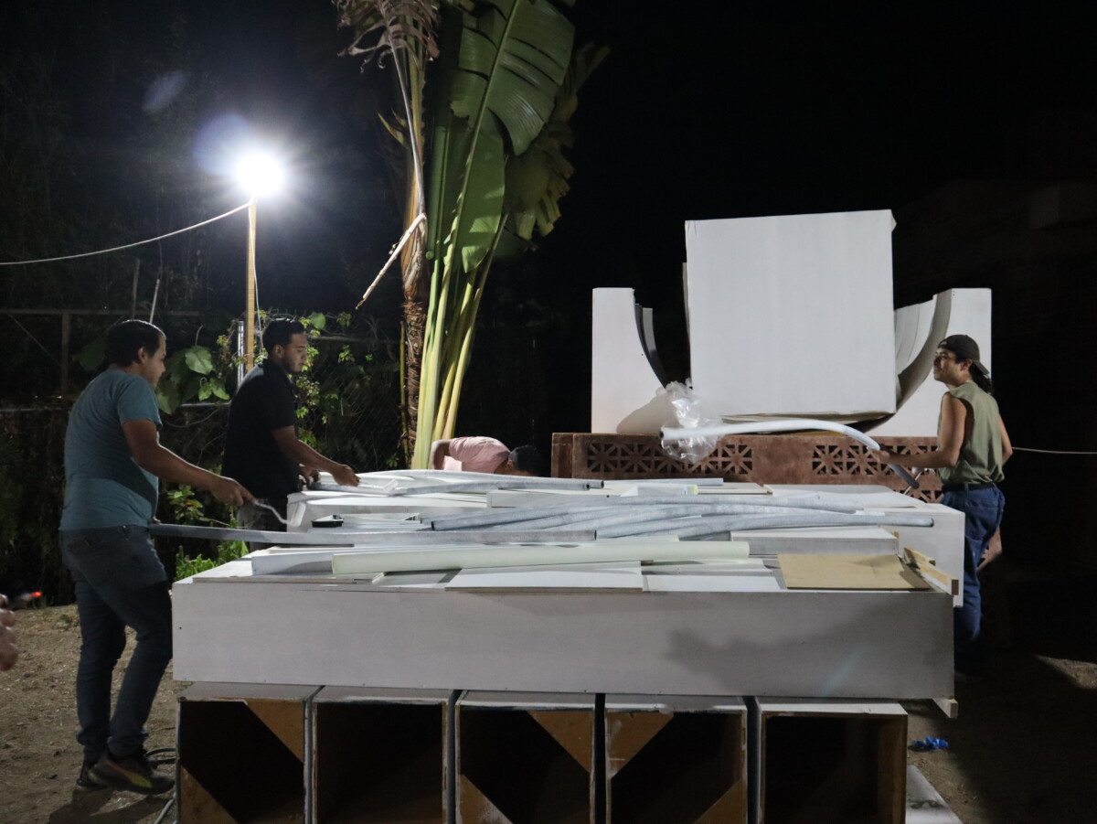 Voluntarios que apoyan en la escenografía. Foto: Sofía Medeles