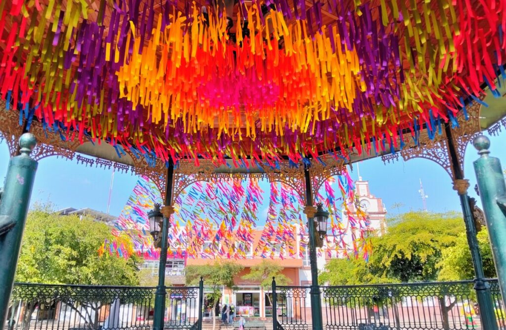 Kiosco de Jocotepec con adornos alusivos al Día de Muertos. Foto: Armando Esquivel.