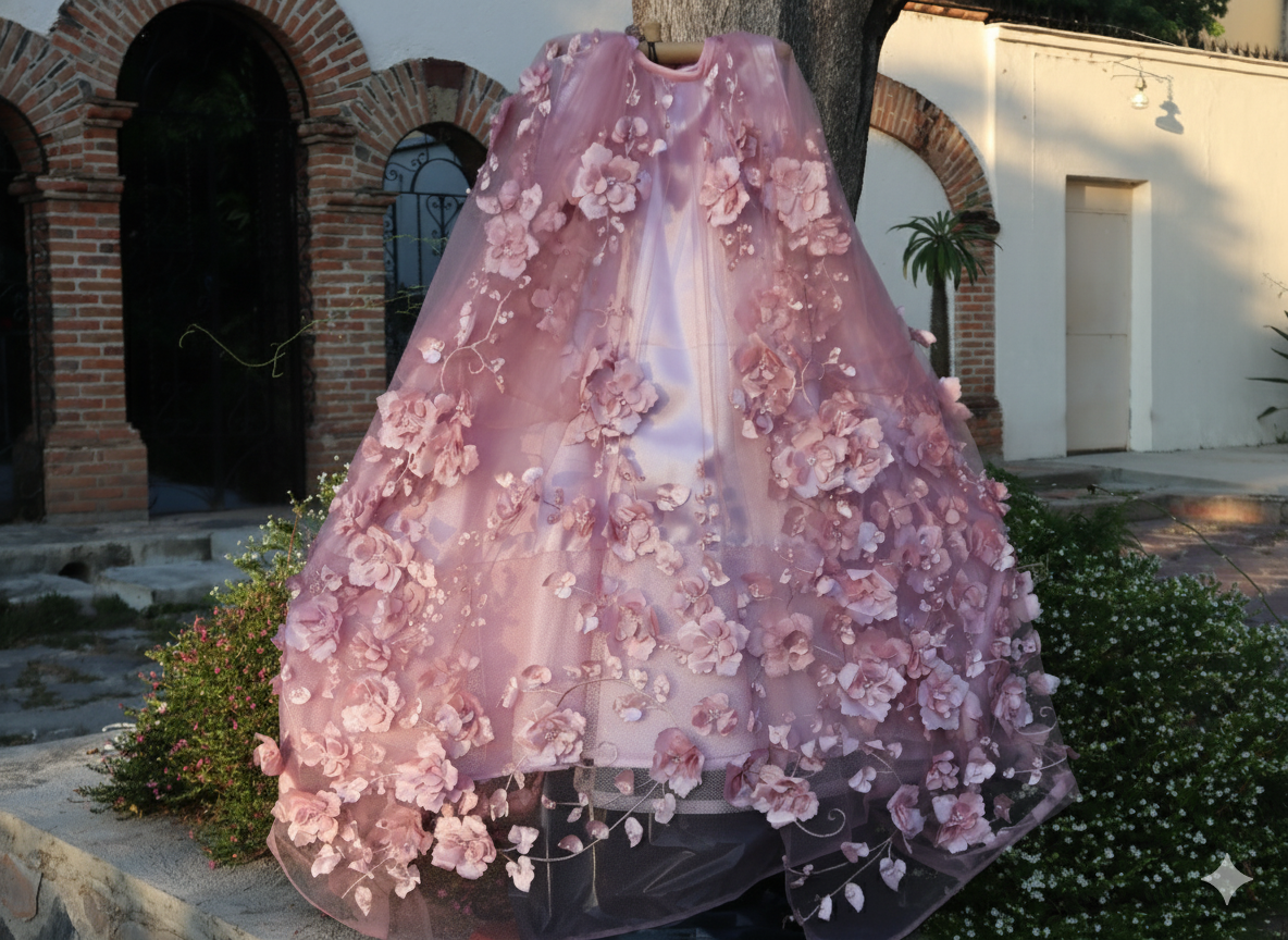 Vestido color rosa con bordado en el regazo. Además del blanco y azul celeste, los colores pasteles son frecuentemente requeridos. Foto: Sofía Medeles.