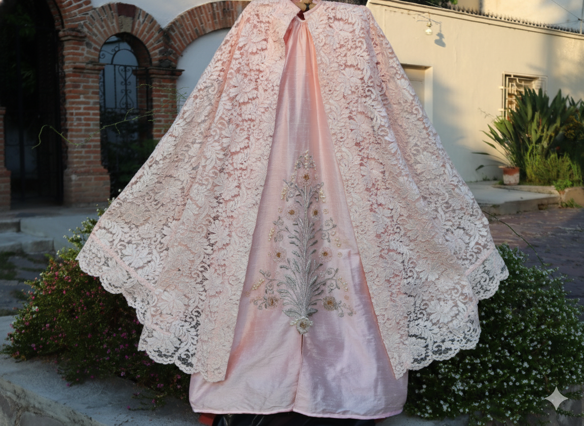 Según relata la propia guardiana, la figura de la Virgen del Rosario podría tener cerca de 500 años, y la costumbre de vestirla se remonta, al menos, a los tiempos de sus abuelos. “Nunca aprendí confección, pero de niña jugaba con mis muñecas y me encantaba hacerles su ropita. Así es con la Virgen”, recordó entre sonrisas. Su habilidad, perfeccionada con los años, ha convertido cada vestido en una obra artesanal única, bordada con paciencia, fe y amor.