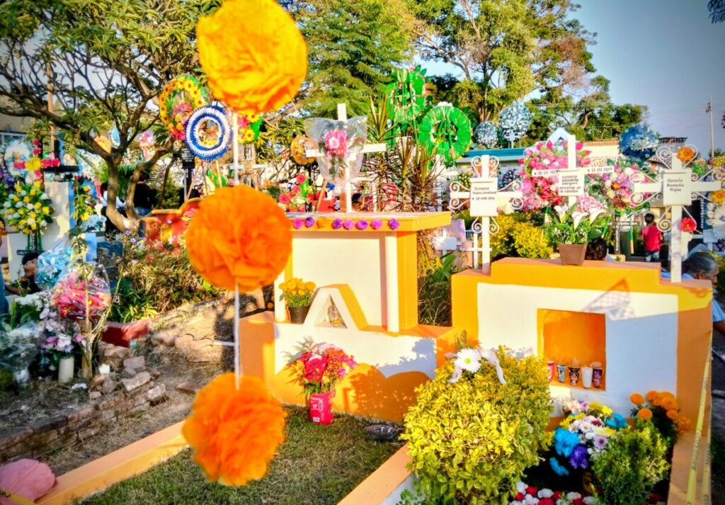 El panteón de San Juan Cosalá lució colorido en Día de Muertos. Foto: Armando Esquivel.