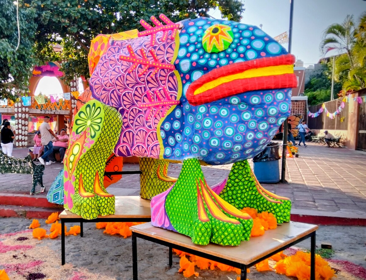 Alebrije que adornó la calle que da a la plaza. Foto: Armando Esquivel.