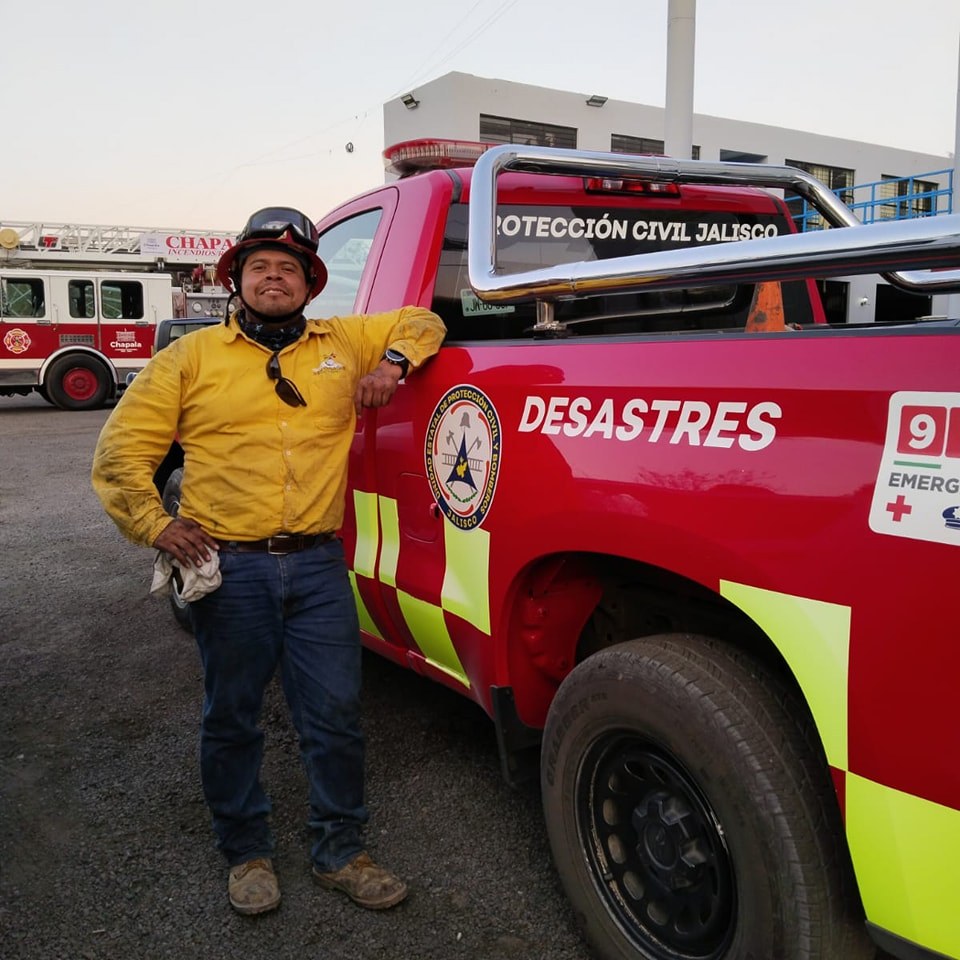 José Vicente Ramírez Reynoso tiene 37 años y es originario de Ajijic. Aunque su profesión formal es la arquitectura, una de sus más grandes pasiones son las montañas. Desde hace seis años que ejerce labores como bombero forestal, tres de ellos como voluntario y los últimos tres como integrante activo de la Asociación Intermunicipal para la Protección del Medio Ambiente y Desarrollo Sustentable del Lago de Chapala (AIPROMADES), donde atiende incendios en los 16 municipios que integran la región por temporadas.
