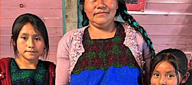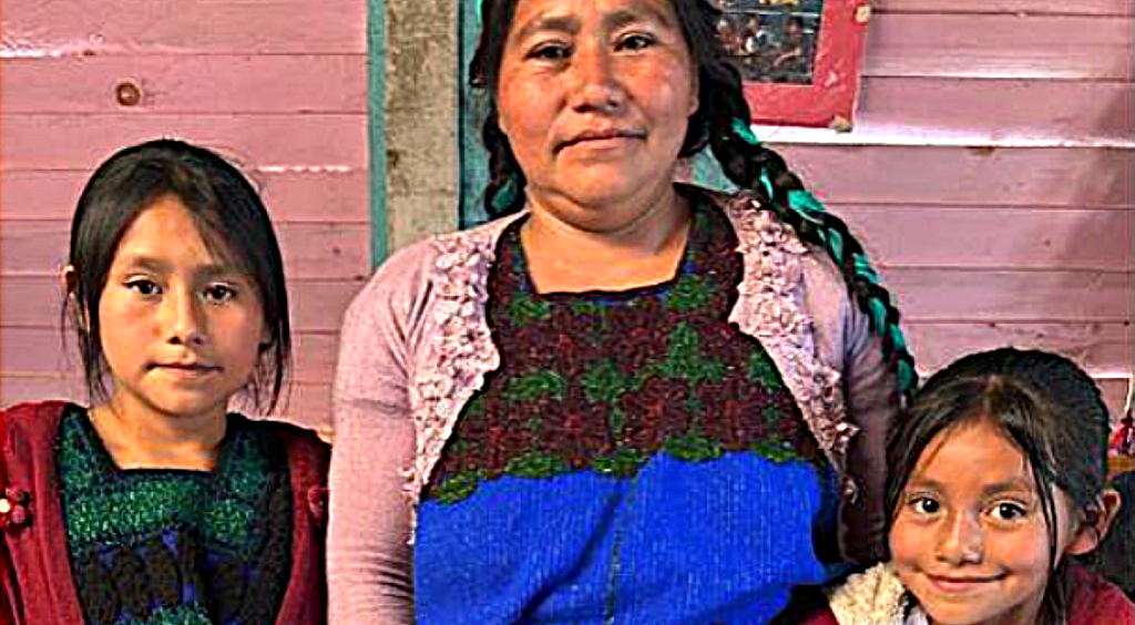 Rose Arias Gutierrez y sus hijas Rosa y Cecelia (izquierda), parte del colectivo de tejido maya Tsobol Antsetik, con sede en Chiapas y patrocinado por Tejiendo por la Justicia. Foto: Alicia Knox.