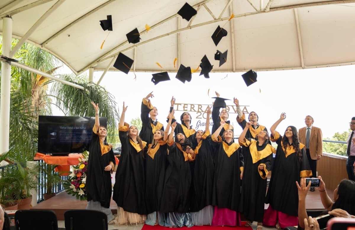 La ceremonia concluyó con el lanzamiento de birretes de los graduados. Foto: Instituto Terranova.