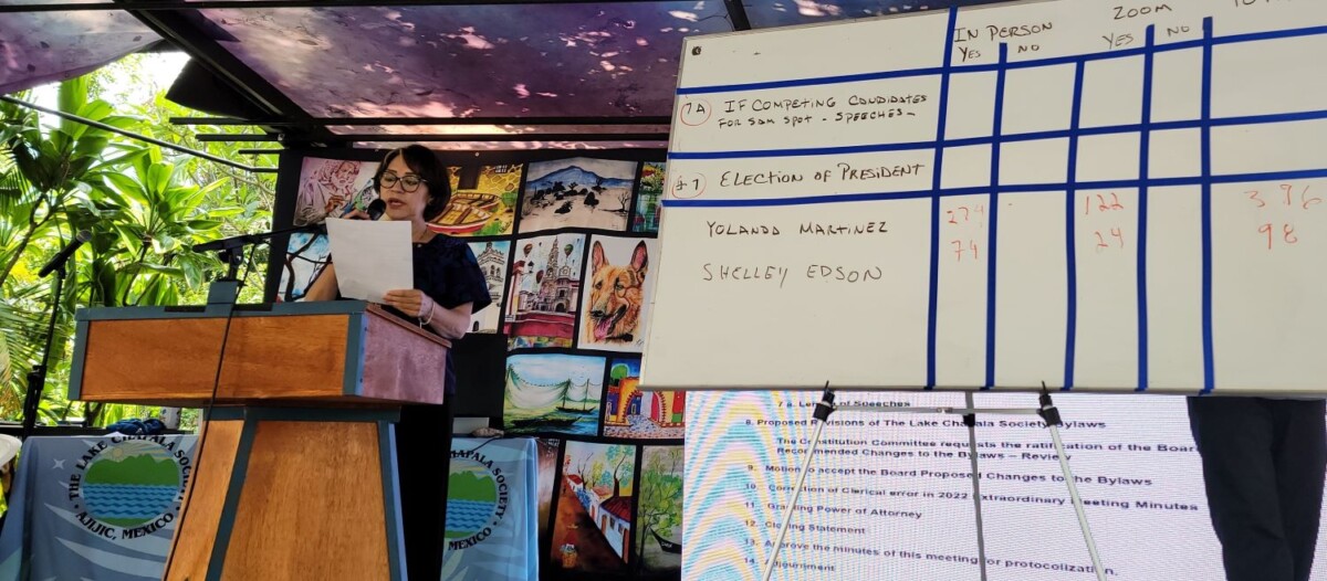 Por Patrick O’Heffernan. – ¡Felicidades Yoli! Yolanda Martínez Lamas fue elegida en la reunión extraordinaria de la Sociedad del Lago de Chapala la semana pasada por un aplastante 79% de los votos emitidos.