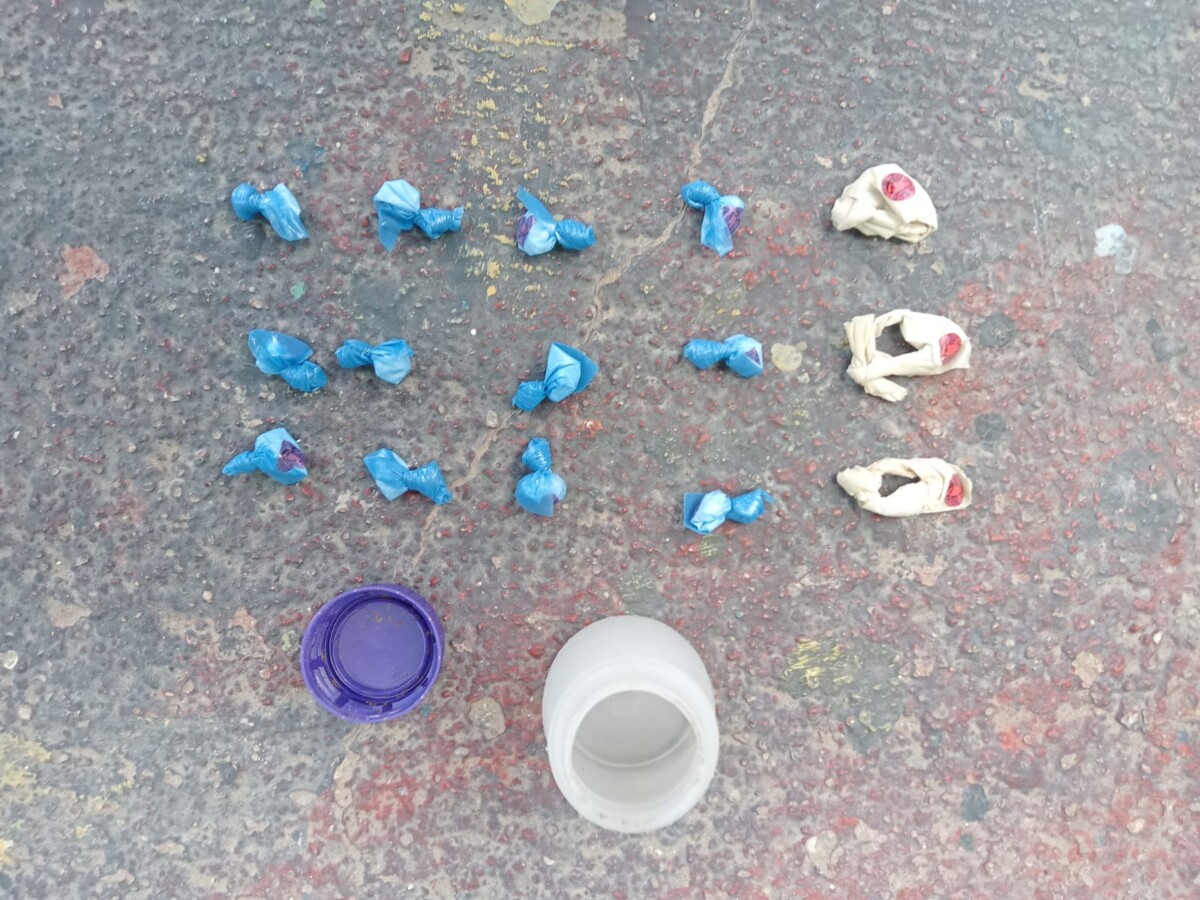El sujeto intentó evadir a los elementos y tras ser asegurado le hallaron un recipiente de plástico en cuyo interior había 12 envoltorios con droga sintética y tres con cocaína, por lo que fue puesto bajo arresto.